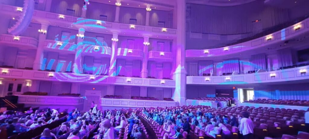 Principal Sound and Lighting Technicians, "Doctor" Rob and "Doctor" Brian, demonstrated additive color mixing in the Palladium's main venue - courtesy of Center for the Performing Arts