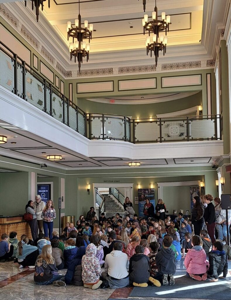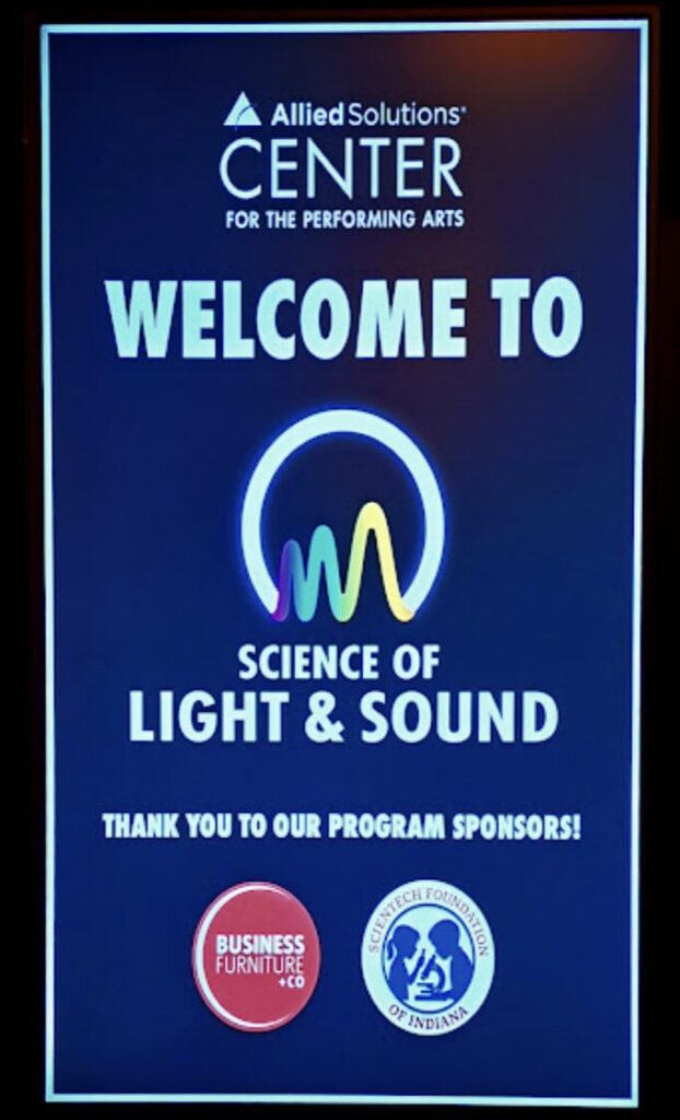About two hundred 4th graders from public, private and home schools in central Indiana arrived by bus and car for the more than hour long program. The presentation in the main venue used the Palladium's state-of-the-art technology to demonstrate the principles of light and sound.